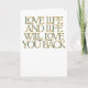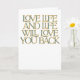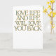 Tarjeta de felicitación de citas Inspiradoras de Love Life Comparte positividad y motivación con esta elegante tarjeta de felicitación que presenta la cita: "Love Life and Life Will Love You Back". Con su tipografía audaz y sus colores vibrantes, esta carta es perfecta para el estímulo, cumpleaños o simplemente porque. Una manera sincera de inspirar a alguien a adoptar la vida con amor y optimismo.