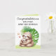 ¡Comparte tus más sentidas felicitaciones y da la bienvenida al recién nacido con nuestra adorable tarjeta de felicitación Sloth Mom & Baby Watercolor! Con una dulce mamá perezosa con un bebé, hojas tropicales y corazones extravagantes en el frente, personalizable con el nombre del bebé, esta tarjeta es la manera perfecta de celebrar la nueva llegada. En la parte trasera, se respira un encanto tropical. Con un espacio interior para tu propio mensaje personal, es una agradable y agradable adición a cualquier regalo de bienvenida para bebés o decoración de guardería.