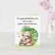 ¡Comparte tus más sentidas felicitaciones y da la bienvenida al recién nacido con nuestra adorable tarjeta de felicitación Sloth Mom & Baby Watercolor! Con una dulce mamá perezosa con un bebé, hojas tropicales y corazones extravagantes en el frente, personalizable con el nombre del bebé, esta tarjeta es la manera perfecta de celebrar la nueva llegada. Con un espacio interior para tu propio mensaje personal, es una agradable y agradable adición a cualquier regalo de bienvenida para bebés o decoración de guardería.