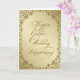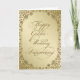 Un diseño de tarjeta creativa que presenta un diseño de marco dorado y florituras con una variedad de imágenes personalizadas, formas, patrones, estilos y fuentes en esta tarjeta de felicitación única por "50 años de bodas". Este diseño elegante y atractivo viene completo con letras de texto personalizables para adaptarse a su propia ocasión especial y saludo. Diga "Feliz aniversario de bodas de oro" de una manera personal con esta tarjeta de felicitación de aniversario diseñada especialmente.