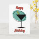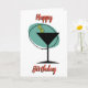 Compra a tu amigo una bebida por su cumpleaños, edita el texto dentro para tu propio mensaje, también el texto principal editable. Un martini de estilo retro con diseño de aceitunas en el frente y en el interior.