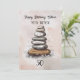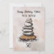 Deseando a un amigo un feliz cumpleaños 50 con un puesto de rocas en una playa.