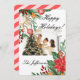 FELIZ PERSONALIZADO DE NAVIDAD FOTOGRAFÍA DE DISEÑO FLORAL ROJO Y VERDE TARJETA DE REUNIÓN