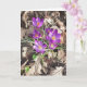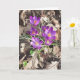 Una de las primeras señales de la primavera, estos cruces de bonito púrpura han florecido entre las hojas caídas en el suelo de los bosques. Con pétalos violetas vibrantes y estambre naranja, esta es una preciosa imagen de crocus púrpura llena de luz y color de primavera.