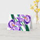 Mi pintura original del color de agua imprimió en una tarjeta de felicitación que ofrecía el flor púrpura del iris y dos las flores de florecimiento del iris yuxtapuestos a los ángulos diagonales.