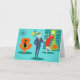 ¡Miel, soy hogar! ¡Esta tarjeta de felicitación retra de los pares del dibujo animado de la era espacial le tendrá el sentir envidioso de los pares del dibujo animado en una tarjeta de felicitación! Las características del diseño un fondo de la turquesa con ladrillos verde azulados y un verde verde oliva, chimenea del cono. Un gato liso, negro se está sentando en una silla anaranjada lisa. Hay un trullo, reloj de pared del starburst y una lámpara pendiente de dos niveles en sombras de amarillo, del azul y del negro. Frente y centro, hay un hombre de negocios distinguido, de martini-swilling en un juego azul y un lazo anaranjado. A su lado, su bomba rubia de una esposa del trofeo está llevando un vestido rojo del meneo y está sosteniendo una bandeja de martinis. ¡Va-va-va-voom!