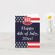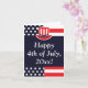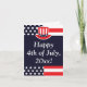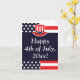 Esta preciosa tarjeta de saludo del 4 de julio es ideal para un fiesta de barbacoa, un picnic o un fiesta de fuegos artificiales. La tarjeta tiene estrellas y rayas rojas, blancas y azules en el fondo. En primer plano hay un sombrero alto de alto nivel con estrellas y rayas. Muy patriótico y divertido.