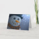 Envíe sus saludos de Seasons con esta tarjeta de saludo de invierno en blanco que incluye un ilustracion de primer plano de un muñeco de nieve sobre un fondo azul de nieve.