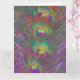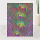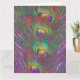 Esta hermosa tarjeta de saludo cuenta con una divertida fotografía festiva de algunas plumas de pavo real tomadas con fotografía macro. Se han utilizado técnicas de coloración artificial para enfatizar el detalle. El resultado es un efecto de mejillón morado con las cucharadas que muestran tonos rojos y verdes.