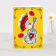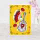 Diseño caprichoso dibujado en un estilo retro con recuerdos de unas vacaciones españolas; una guitarra de hierro forjado, abanico de encaje y rosa roja. Un diseño personalizable en negro, blanco, rojo y amarillo dorado para que lo personalices con tu propio texto, imágenes e ideas. Una imagen de arte digital original.