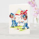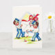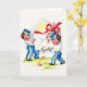 Tarjeta de felicitación de cumpleaños retro / vintage. Entrega especial para cumpleaños o cualquier ocasión especial! ¡Dos adorables chicos de correo entregando un gran sobre lleno de flores!