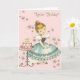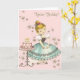 Tarjeta de felicitación de cumpleaños retro / vintage. ¡Adorable chica con una hermosa torta de cumpleaños! ¿Otro cumpleaños?