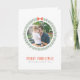 Una tarjeta de saludo festivo con una simple corona de flores y un ilustracion de arco.
