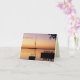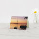 Bonita puesta de sol con siluetas de velero y sillas en un muelle. Perfecto para mandar a esa afortunada pareja. PERSONALIZABLE COMPLETO