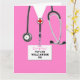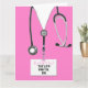 Diseño creativo de temática médica con matorrales de hospital rosados. Editar texto para agregar nombre y credenciales médicas.