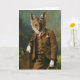Esta tarjeta se ilustra con el retrato de un joven zorro victoriano en un traje y sosteniendo su gorra.