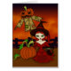 La tarjeta otoñal con el ilustracion que ofrece a la bruja y en la cosecha de su calabaza, perfecciona para los cumpleaños o Halloween.