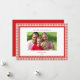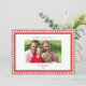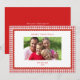 Tarjeta de felicitaciones de Navidad con foto familiar con borde de gingham rojo y blanco de estilo retro elegante y simple con borde escalonado