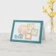 Tarjeta de felicitación con un bebé vestido con traje corporal azul inclinado sobre bloques "ABC". Encuentra otros artículos para bebés tanto para chicas como para niños en MI COMPRA.