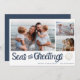 Trae un toque de encanto costero a sus saludos de vacaciones con nuestra tarjeta de felicitaciones y consejos de fotografía de la familia costera. Esta hermosa tarjeta de diseño captura perfectamente la esencia de la unión familiar en el entorno del mar sereno, lo que hace que sea una forma encantadora de compartir sus deseos de vacaciones. Aspectos destacados del diseño: Elegante Motif costero: Con un bonito diseño de conchas marinas y sofisticada tinta azul marino, esta tarjeta transmite una atmósfera costera intemporal que resalta tanto a los amantes de la playa como a las familias. Tres diseños fotográficos: Celebre sus momentos más apreciados con una exhibición de tres fotos, lo que le permitirá mostrar las fotos favoritas de su familia del año. Este toque personalizado hace que tu carta sea un regalo para los seres queridos. Mensaje alegre: El caprichoso saludo "Seas & Greetings" resume la alegría de la temporada de vacaciones y agrega un giro único a la orilla del mar que diferencia tu carta.
