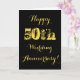 La parte frontal de la tarjeta dice, "¡Feliz 50 Aniversario de Boda!" Dentro, la tarjeta dice, "Queridos Mamá y Papá, Felicidades por sus 50 años de Aniversario de Boda! Esperamos que tengan muchos más. Con amor, Brian, Ann, Casey, Kaleb y Caden" Los nombres ("Queridos Mamá y Papá") se pueden personalizar fácilmente al igual que el texto interior de la tarjeta y la firma ("Con amor, Brian, Ann, Casey, Kaleb y Caden" se puede cambiar a lo que desee.)