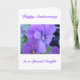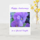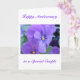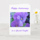 Tarjeta de Feliz Aniversario de Boda con pensamientos púrpuras tomada en primavera. Adecuada para cualquier persona en su familia (padres, tías, tíos, hermano, hermana, suegros) Haga clic en "Personalizar" para cambiar las palabras o dejarlas como están.