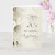 Tarjeta de feliz aniversario de bodas para pareja en elegantes tonos crema con sofisticado diseño floral y de volutas.