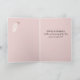 Esta tarjeta de aniversario presenta frondas frondosas de oro rosa sobre un fondo rosa y azul con olas doradas. Las páginas interiores son un rosa a juego con un ramo de hojas en el lado izquierdo.