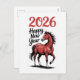 Celebra el Año Nuevo 2026 con esta tarjeta de felicitación audaz y festiva que presenta una ilustración dinámica de un caballo rojo y el mensaje alegre “Feliz Año Nuevo 2026”. Perfecta para enviar cálidos deseos a familiares, amigos y colegas. El diseño del caballo poderoso simboliza fuerza, energía y buena suerte — una forma inspiradora de dar la bienvenida al año que viene.