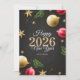 Diseño simple y elegante de tarjeta de felicitación de Año Nuevo 2026. Perfecta para deseos de vacaciones, regalos de temporada, invitaciones y decoraciones festivas. Ideal para imprimir en tarjetas, carteles o proyectos digitales.