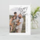 Esta tarjeta plana doble cara moderna y minimalista de vacaciones de año nuevo presenta tipografía de escritura a mano y un marco de foto de arco. Inserte sus fotos favoritas y personalícela a su gusto. Fotos por prostooleh / Freepik.