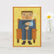 Hombre elegante sentado en un sillón con una taza de café caliente al vapor Cambiar las palabras que hay dentro para personalizar