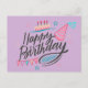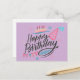 Tarjeta postal de fiesta de cumpleaños feliz púrpura.