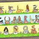 Tres filas de conejos están deletreando "Feliz Cumpleaños" con sus orejas.