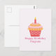 Una tarjeta postal rosa de Feliz Cumpleaños con mensaje personalizable, una magdalena y una vela. ¡Envíala para el cumpleaños de un amigo o un familiar! También es perfecta para el cumpleaños de un pastelero o un amante de hacer pasteles.
