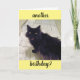 Esta tarjeta de felicitación presenta un gato negro esponjoso con una mirada de sorpresa y las palabras "¿Otro cumpleaños?". El interior dice: "¡No te preocupes por eso! ¡Cada año eres mejor!"
