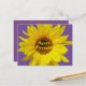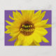 Tarjeta morada con girasol amarillo y texto de Feliz Cumpleaños