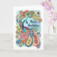 Un pavo real elegante en un patrón de paisley, para desear a alguien un feliz cumpleaños.