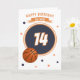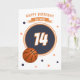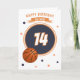 Tarjeta de Feliz Cumpleaños Deportes Baloncesto. Una tarjeta moderna de cumpleaños personalizada con un balón de baloncesto, nombre en la cinta y edad. Puedes cambiar cualquier texto en la tarjeta y dentro de ella.