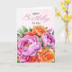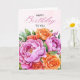 Celebra un cumpleaños con una belleza floral atemporal. Esta elegante tarjeta de Feliz Cumpleaños presenta un exuberante ramo de acuarela de peonías rosadas y rosas naranjas cálidas, combinadas con un follaje suave y letras de escritura elegante en la parte frontal. El diseño floral refinado se siente clásico y fresco a la vez, lo que lo convierte en una hermosa opción para celebraciones significativas de cumpleaños.