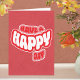 Una Tarjeta de Feliz Cumpleaños Moderna Doblada con un mensaje de 'Que tengas un día feliz'. Viene en una variedad de colores y también se puede personalizar al color que desees. La tarjeta se puede utilizar como tarjeta de cumpleaños o como tarjeta para cualquier ocasión. El mensaje interior es editable y se puede personalizar por ti.