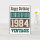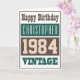 Tarjeta de cumpleaños personalizada nacida en 1984 con el año de nacimiento. Si estás buscando una tarjeta que incluya el año de nacimiento del destinatario, esta es la ideal. Agrega tu elección de nombre y mensaje interior. 1984