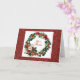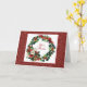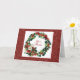 Este diseño de acuarela botánica incluye rosas, eucalipto, bayas y aceitunas. Este diseño de Acción de Gracias de otoño está en tonos intensos de verde, turquesa, dorado, blanco y rojo intenso y está enmarcado con un fondo con apariencia de brillo rojo. Coordine este artículo con los otros artículos de mi colección de otoño Gold Dipped. Esta tarjeta también está disponible con fondo de brillo dorado.
