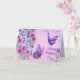 La tarjeta de felicitación del Día de la Madre se muestra en una hermosa impresión de flor y mariposa.