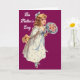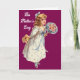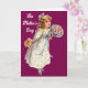 Una bonita imagen vintage de una niña con flores y un regalo, aparece en esta tarjeta de felicitación del Día de la Madre. La parte frontal de la tarjeta dice, "Este Día de la Madre" y en el interior de la tarjeta se lee, "Que tu día esté lleno de mucho Amor y Alegría. Feliz Día de la Madre para ti". ¡Una tarjeta dulce para enviar en el Día de la Madre!