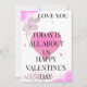 Expresa tu amor con esta encantadora tarjeta de Día de San Valentín rosa que presenta un diseño romántico suave perfecto para mensajes sinceros. Ideal para parejas, amigos o cualquier persona especial, esta tarjeta elegante aporta calidez y afecto a tu celebración del Día de San Valentín. Personalízala con tu propio mensaje para crear un recuerdo significativo para el 14 de febrero.