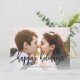 Celebra las fiestas con una tarjeta de foto personalizada que presenta una divertida fuente de escritura moderna superpuesta para mostrar tu foto y un patrón en la parte posterior.