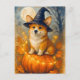 Tarjeta de Feliz Halloween con Corgi Lindo y Calab
