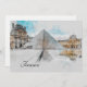 Tarjeta de Felicitación de Navidad del Louvre en Acuarela – Tarjeta de Vacaciones de un Elegante Punto de Referencia Parisino