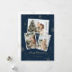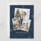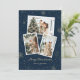 Elegante tarjeta de Feliz Navidad con collage de fotos en azul y dorado con copos de nieve y nieve que cae. Personaliza fácilmente esta tarjeta navideña clásica con tus fotos y texto.